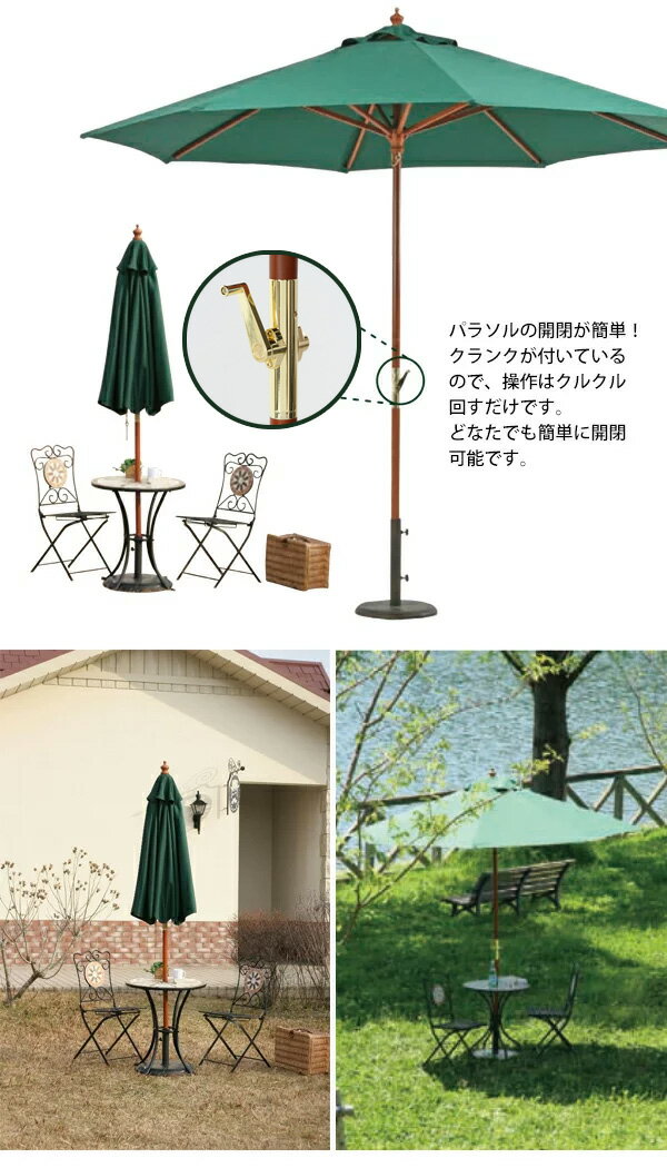 パラソルの開閉が楽なクランク付きのガーデンパラソル。