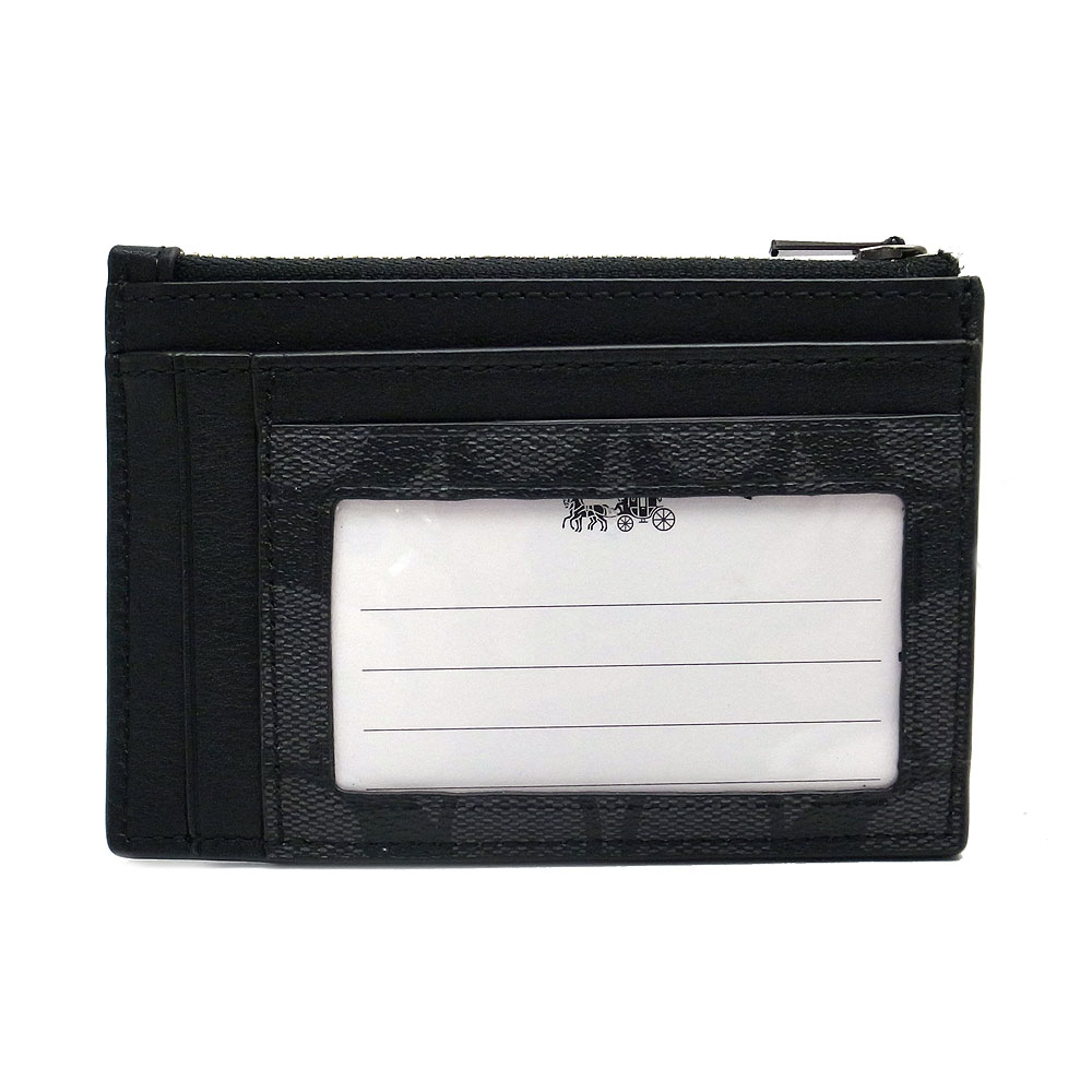 ■商品説明素材PVCコーティングキャンパス×レザー カラーチャコール×ブラックサイズ横12.5cm×縦9cm×厚み1.5cm 付属品なし仕様ファスナー式開閉/外側:ファスナー式小銭入れ×1、カードポケット×6、オープンポケット×2、IDポケット×1こちらの商品は、コーチ直営のアウトレットから買い付けた商品です。
