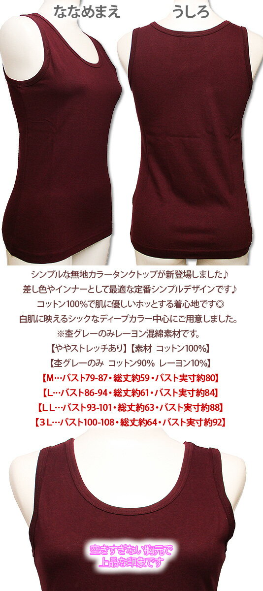 【コットン100%】深美発色綿100%タンクトップ シンプルな無地カラータンクトップが新登場しました♪