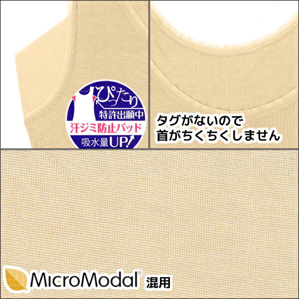 脇を閉じた時に脇のラインにピッタリとフィットする設計にこだわりの汗取りパッド付。